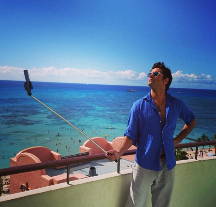 Lo curioso no es este Selife Pod (un trípode 'alargabrazos' para hacerte planos de acción y selfies). Lo verdaderamente sorprendente es que John Stamos (Padres Forzosos') todavía conserve su pelazo.